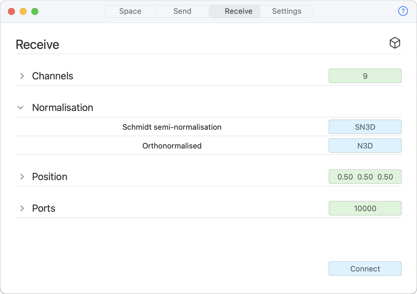 Click "Create Device" this will create a new 9 channel Virtual Audio Device to receive 2nd order ambisonics from the Space.